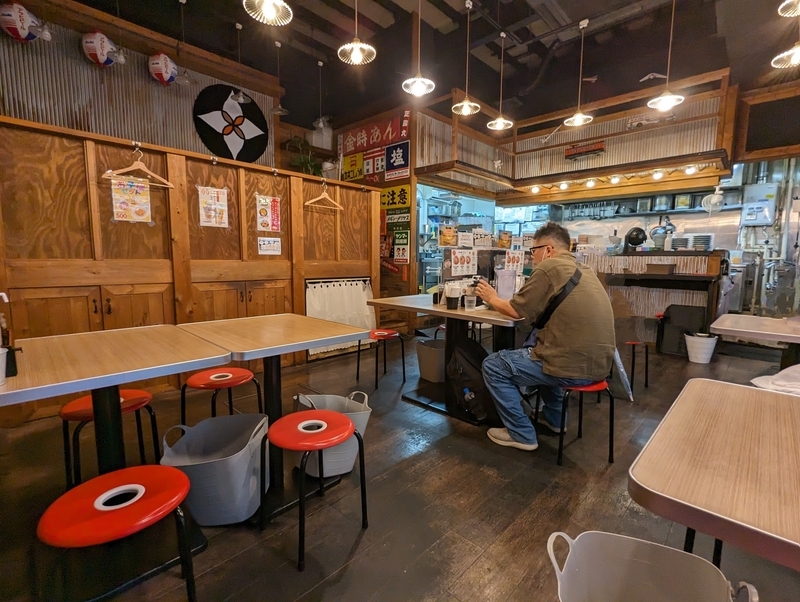 店内は昭和的なレトロなポスターなどで雰囲気作りしており、20名ぐらいのお客さんが入れそう。去年オープンしたばかりなので、床などもさらっと清潔。